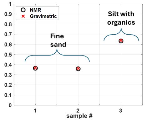 The image below shows a good agreement between water content estimated by gravimetric analysis and the one measured by Helios Trek system.
