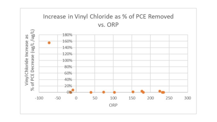 As a percentage ofthe amount of PCE removed, the increase in vinyl chloride is much less than 10% except when the ORP s less than -50.