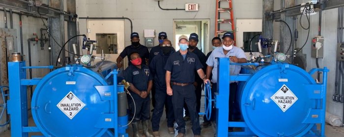 ChlorTainer® vessel, protecting employees from accidental exposure to chlorine gas and injury from lifting and moving chlorine gas tanks.