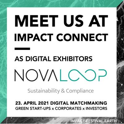 NovaLoop wird am 16. und 17. September 2021 beim diesjährigen Impact Festival vertreten sein. Die 2-tägige Veranstaltung vernetzt Start-ups, Unternehmen, Investoren und Thought-Leader, um nachhaltige Business-Modelle zu diskutieren und zu entwickeln. Am Donnerstag, 16. September, hält NovaLoop einen Impulsvortrag zum Thema „The roadmap from market access compliance to implementing sustainability goals” im Rahmen einer Masterclass.