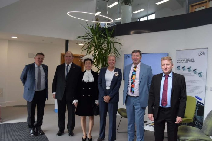 The visitors took the opportunity to tour the eco-friendly, state-of-the-art facility including its in-progress works of the research & development centre to support company growth and employment where scientific work will continue to drive further innovation across the business. They then presented the Queen’s Award to ION Science managing director Duncan Johns and Steve Newcomb, the company’s operations director and deputy managing director.
