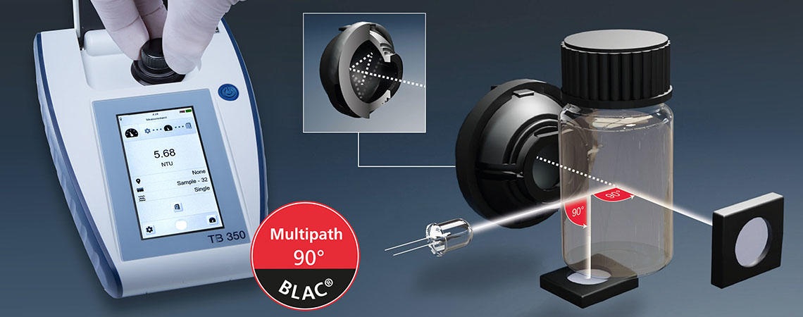 The new BLAC® technology stands for Backscattered Light Absorbing Cavity. The light-absorbing trap almost completely eliminates unwanted stray light and delivers extremely accurate results for low turbidities down to 0.01 NTU.