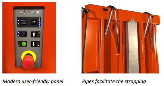 Model 3220 is equipped with the same user-friendly operator panel and advanced functions as the balers in Orwak’s COMPACT and POWER ranges featuring a material selector for cardboard and plastic (HP/LP), bale height settings in three steps, service and temperature indicators. The 3220 is ideal for compacting cardboard and plastic foil and special pipes facilitate the bale strapping. It also comes with a special software for successful compaction of plastic foil and when it is activated, the material is kept under pressure for several minutes to squeeze out more air from the bulky plastic.