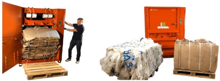 Maximum safety for the operator and people in the vicinity is the hallmark of all Orwak products. To eject the bale, the operator stands at the side of the machine, pushes two buttons and the bale effortlessly tilts out on the pallet in front of the baler and can easily be removed by a forklift. Our tests show that the bale weight for cardboard is up to 250 kg.