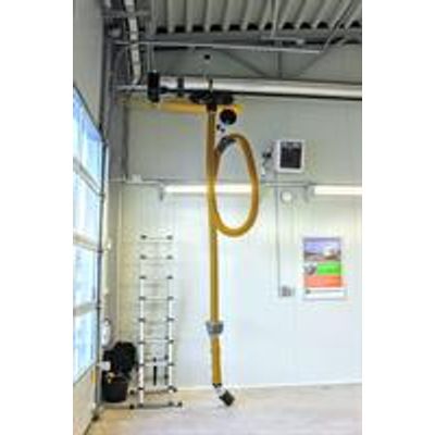 Attach one of the extraction nozzles to the vehicle’s exhaust tailpipe. As the vehicle moves through the facility, the CRS enables the hose to move along with it. When the vehicle exits the facility, the nozzle can be detached manually by the user or automatically. The CRS returns the nozzle and hose to the original starting position by the operator via a remote control, or automatically via a sensor.