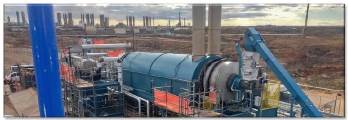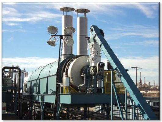 RLC Technologies was contracted by Veolia Water North America to construct a 96” diameter by 48’ length ATDU system for the processing of tank bottoms, oily sludge and refinery waste. The 96” ATDU is the largest built by RLC to date. The plant is fired with natural gas and features an RLC built Thermal Oxidizer Unit for the handling of non-condensable vapors.