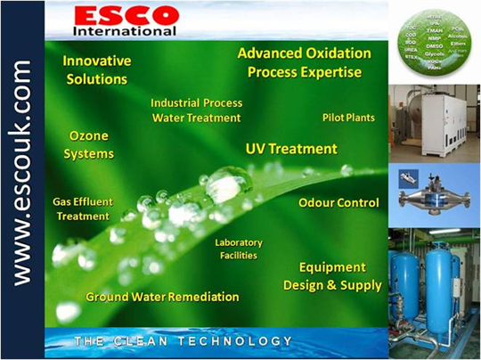 ESCO International is a leading provider of Ozone, UV and Advanced Oxidation Processes for industrial and municipal applications. Using advanced treatment technologies, the group offers unique solutions to some of the most critical water and waste water and gas effluent challenges.