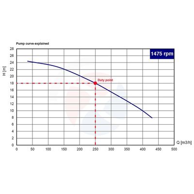 - The lines come together at 250 m³/h at 18 mwc, that point we call the duty point
