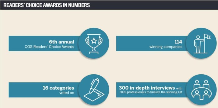Canadian Occupational Safety’s annual Readers’ Choice awards recognize outstanding products and services in the safety sector.