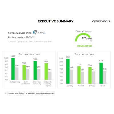 Siveco China customers can obtain a copy of our CyberVadis assessment report upon request, to help fulfill their third-party due diligence in an efficient manner. We strongly recommend that clients pay great attention to third-party risk exposure, including but not limited to cybersecurity, first during the vendor evaluation phase and later during the usage phase.