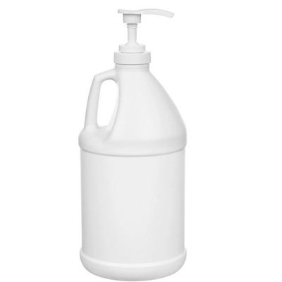 1/2 Gallon White HDPE Plastic Round Jug (70 Gram), 38mm 38-400, Lotion Pump w/9-1/2" Dip Tube. This white 1/2 gallon plastic round jug with pump is ideal for bulk storage of viscous liquids. It features a handle on top near the opening, which is ideal for carrying and pouring. It has a round body and base and an ample label panel. Its sturdy design is common for packaging industrial solutions such as cleaning, gardening and automotive chemicals. The pump features a 4cc output per stroke for controlled dispensing.