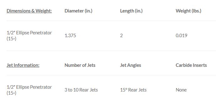 The Ellipse Penetrator Nozzle by Shamrock is a bullet style nozzle designed for greater thrust and penetrations through grease and hard soap. It can be used in pipe sizes ranging from 2 to 8 inches.