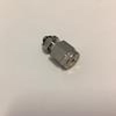 The 1/8" Compression Fitting Connector joins a 1/8" outside diameter (OD) metal tube on one side with a 10-32 threaded fitting on the other - which fits into the inlet or outlet port on the device. This fitting is made of 316 Stainless Steel.