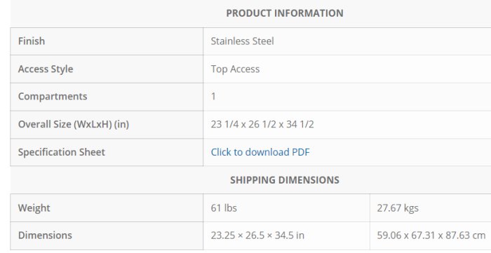 Lakeside -Â Model 3310 -1 Compartment, Top Access, Stainless Steel Finish