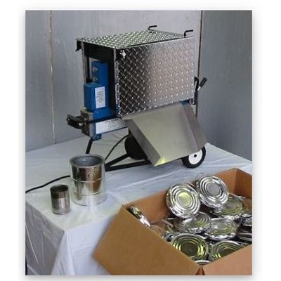 Little Squeeze electric 110V chrome can crusher basic (least exspensive on the market) for crushing small cans up to 1 gallon only, least exspensive in the market, table top, to purchase a add on stainless steel chute go to accessories.