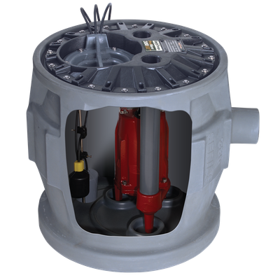 Compact simplex grinder system designed for sewage applications. Perfect for basement bathroom additions and remodeling projects.