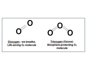 On the other hand, its triatomic cousin, Ozone, is highly reactive, more powerful oxidant and disinfectant. It (O3) is constantly in search of partner molecules to whom it can transfer one of the three oxygen atoms and revert to stabler O2. It strongly absorbs ultraviolet UV-B radiation, and the high-altitude ozone layer helps protect the biosphere from adverse impacts of exposure to ultraviolet radiation. Ozone in Earth’s atmosphere is regarded as a pollutant, one of the six pollutants monitored in ambient air quality.