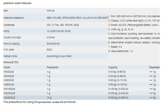 - Keep the weighing pan and Platform Scale body clean and tidy to ensure the measured service life of the scale.