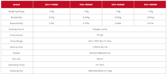 Halogen moisture meter( also called moisture balance or halogen moisture meter) is a fast moisture detection instrument heated by halogen lamp.It can quickly and evenly dry the sample so as to obtain accurate moisture determination results and clear moisture determination information.110g weighing range and 1mg/2mg/5mg/10mg readability for your choice.