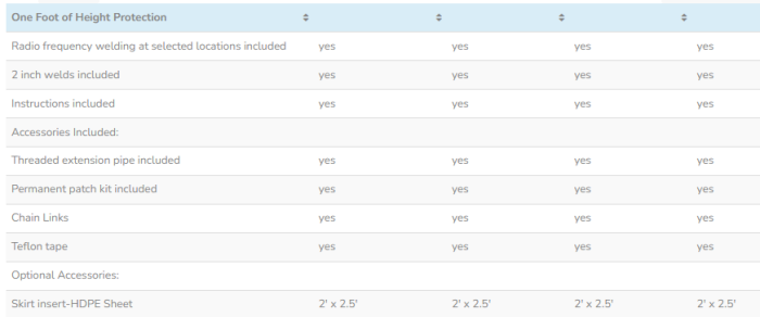 Included accessories are quick links, multiple ports, port plugs and 2 inch ball valves and multiple drain ports. Also standard are our patch kits, 2 year limited warranty and instructions.