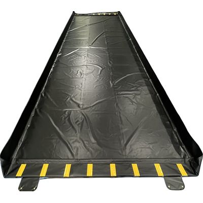 Compacts down for easy storage. Low Profile Exit and Entry Walls that raise with level of spill. No corners to rip out. Trucks can drive over walls hassle free. Fast berm assembly. Lightweight, portable and quick to deploy. Longest warranty in the industry. Heavy Duty Fabric. No exposed screws or screws of any kind. Overlap Seams. Superior workmanship and warranty.