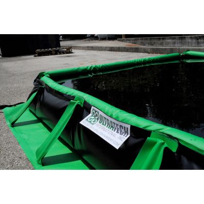 Rapid Rise Spill Berm Sidewalls remain down during normal operations, loading and unloading. Vehicles and equipment can drive in and out with no set-up or take-down required. In the case of a spill, the foam ring around the top perimeter of the Rapid Rise Spill Containment Berm rises with the level of spilled liquid. Provides quick and easy spill containment for drums, IBCs, vehicles, frac tanks and other large containers. Helps meet EPA Container Storage Regulation 40 CFR 264.175 and SPCC requirements. Custom sizes available. Standard material of construction is Copolymer 2000™.