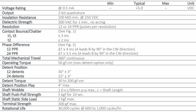 Compact 12mm package size; Single, dual and tri-color LED backlit shaft; Rotational life (30,000 cycles); Switch life (20,000 actuations); Variety of standard resolutions and detent options.