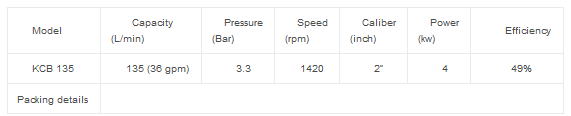 - KCB series gear pump flow:18-9600L/min,Power:1.5KW-160KW, Caliber:3/4″to 14″,Max Pressure:14.5 Bar,it can be used for fuel oils,lubricating oil transfer,diesel,vegetable oil,Palm Oil,kerosene,biodiesel.Typical application of KCB gear pumps on board ship or vessel are supply of F.O., M.O., L.O., diesel oil, or even petrol, benzene and so on.