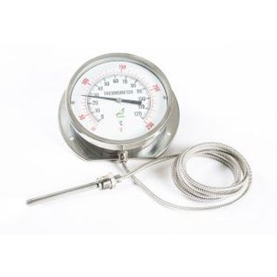 These series of thermometers are designed for remote reading of the temperature, with capillary tubing between case and sensing bulb. The entire thermometer is filled with an inert nitrogen gas offering fast response. The material is all Stainless Steel 304.