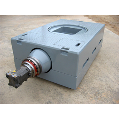 MODEL 17.5 is a heavy duty rotary table designed to take 41/2" drill pipe down to 12,000 ft. Features include high quality bearings on the pinion shaft as well as angular ball thrust bearings serving as the main and upthrust bearing. The spiral ring and pinion gears are heat treated and lapped. The pinion shaft also has an adjustable locking device. The 17.5 table can be furnished with 44" through 531/4" centers.