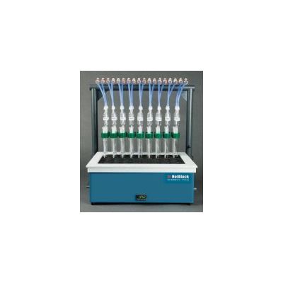 The SimpleDist System from Environmental Express offers a safe, convenient option for ammonia and cyanide collection. The 18-position system eliminates most of the glassware associated with traditional systems. The system does not use cooling water or the cumbersome tubing that cooling water requires, making it easy to use and inexpensive to maintain and operate. The SimpleDist 18-Place Manifold Kit contains everything you need to perform Distillation collection using your existing SC154 HotBlock. HotBlocks are sold separately.