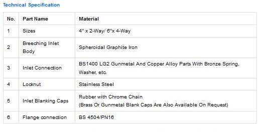 2-Ways & 4-Ways Breeching Inlets are privided at the Dry or Wet Riser Mains of 4"(100mm) or 6"(150mm) fitted at ground level to provide easy access for the connection to water supply. In conjunction with the Fire Protection System, the Fire Brigade is able to charge-up the System via the Breeching Inlets during emergencies.
