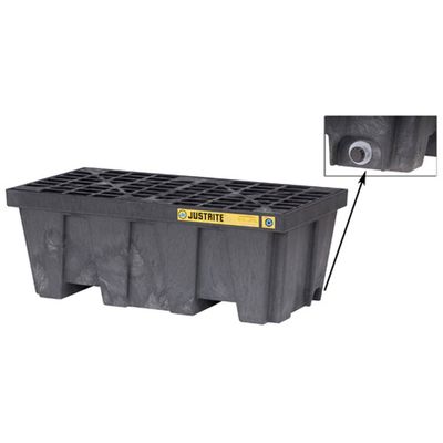 Justrite EcoPolyBlend 2 Drum Black Spill Pallet 28625 With Drain - The industry`s first spill pallet line made of recycled resin helps support green initiatives.