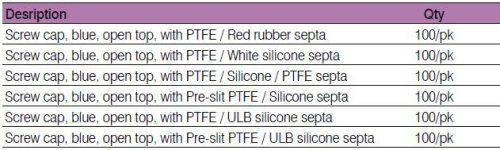 - Pre-assembled caps and septa are convenient and minimize contamination from handling
