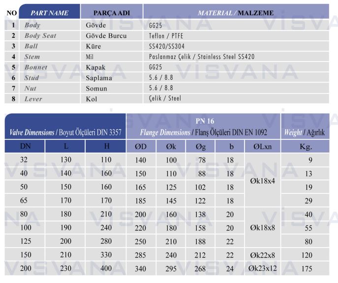 VisvanaModel PN10-16 -2 Pcs Design Vall Full Bore Ball Valve