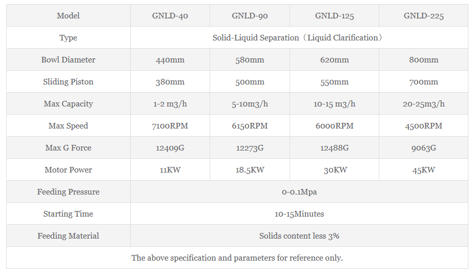 The 2 phase disc stack separator is used to separate the fine particles from the liquid and discharge clarified liquid. Compared with decanter centrifuge, the G force of 2 phase disc stack separator is much higher than decanter centrifuge.