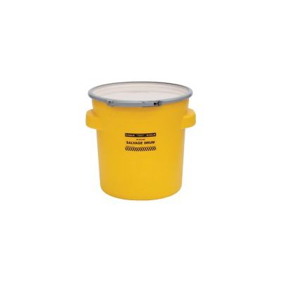 The Eagle 20 Gallon Salvage Drum is constructed of yellow blow-molded high-density polyethylene (HDPE) with UV inhibitors, is durable and lightweight, weather and chemical resistant, and has a white lid with a metal lever-lock band closure. Ideal for safe storage, handling and transportation of hazardous materials, spill containment and cleanup of hazardous materials, original shipping container, bio waste disposal and incineration. Salvage Drums for use with damaged or leaking containers of hazardous materials or used absorbent materials contaminated with hazardous substance. "Salvage Drum" labeling and passed a 3-PSI pressure test.
