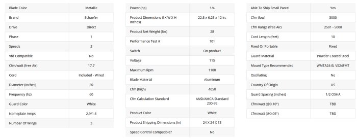 Schaefer OSHA - Model 20CFO -20 Inch Circulation Fan
