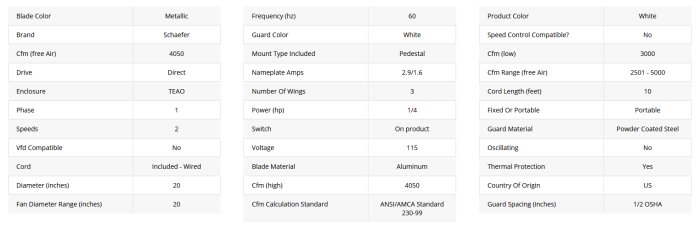 Schaefer OSHA - Model 20PFR -20 Inch Pedestal Fan