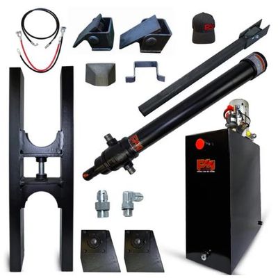 Telescopic Dump Trailer / Truck Kit. Telescopic cylinder (90" stroke) can lift up to 20 tons, is perfect for 8-12-foot dump bed trailers and includes: