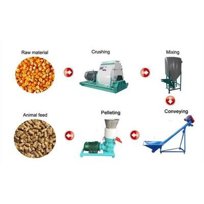 The 200-300kg/h feed pellet production line is developed especially for small farms. For your convenience, we provide this set of machine which includes only two processes, crushing and mixing process-pelletizing process. Screw conveyor connects the two processes. It’s easy and safe to operate at home. For more information, please contact info@feed-pellet-mill.com★ AMS400 Combined Crusher&Mixer