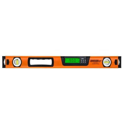 Johnson`s durable and accurate 24" digital box level is the perfect addition to your toolbox. Its EZ-Read™ backlit display is highly visible on both the dimmest and the brightest jobsites, while the digital measurement reading will automatically invert for convenience when you are taking overhead measurements. This level can show five units of measurement - degrees, percent, in/ft (fractional), in/ft (decimal) and mm/m - and has an accuracy of +0.1° at 0°/90°. Durability is also never a concern with this level - its rigid box frame resists deflection and twist, shock-absorbing end caps protect the level when it is dropped and the solid block vials were designed to never fog, leak or crack. It comes with a soft-sided pouch to keep your tool clean and safe when not in use.