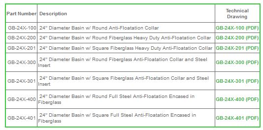 AK-Industries - Model GB-24X -24 Inch Diameter Fiberglass Basins