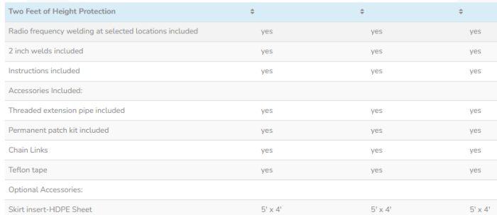 Included accessories are quick links, multiple ports, port plugs and 2 inch ball valves and multiple drain ports. Also standard are our patch kits, 2 year limited warranty and instructions.