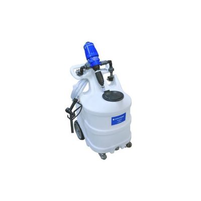 The 25-Gallon High Capacity Mobile Fill Cart conveniently allows the user to add and adjust disinfectant/chemical concentrations on demand.