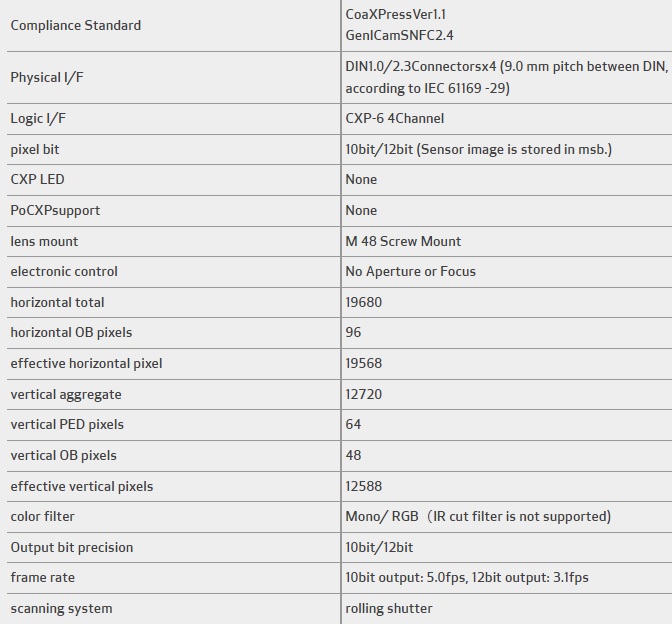 The LI8020 Evaluation Kit Features: Equipped with APS-H 250M pix CMOS sensor. Ultra-high resolution imaging with 250 million pixels (Frame rate up to 5.0 fps). CoaXPressReady. High-speed data transfer (4 x 6.25 Gbps); 3.0 m maximum cable length (operation result) * It depends on the material of the cable. Shooting size changing function. Vertical decimation function for decimating and outputting vertical pixels. Improved shooting frame rate. Partial extraction function for extracting and outputting one subject area from all pixel areas. Reduces image data that is not subject to image capture and improves frame rate (* Vertical only).