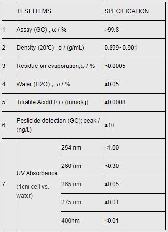 2.5L Pesticide Analysis Grade Ethyl Acetate. CAS.No: 141-78-6. Molecular formula: CH3COOC2H5. Molecular weight: 88.11. Density(20): 0.900g/ml. .High purity solvent, Low residue Low water, Low UV-absorbance, Assuring optimum sensitivity, Lang term stabilityMost popular related searches