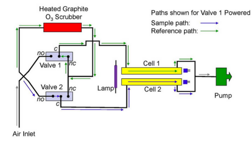 Like our Model 205 Ozone Monitor, the Model 211-G is dual beam, with a measurement of the transmission of UV light through ozone-scrubbed air being made simultaneously with a measurement of UV light passing through unscrubbed sample air, thus increasing the precision and baseline stability of the instrument.
