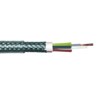 Motor connecting cable with overall copper braided screening used for the connection of a frequency converter with a frequency converter motor. Employed in connection with machine tools, handling gear, machining and processing equipment, industrial robots, assembly lines, etc. when exposed to harsh mechanical strain. Fixed installation and occasional free movement, in dry, moist, and wet rooms. These cables with copper screening are ideally suitable for interference-free data and signal transmission in measuring and control technology.