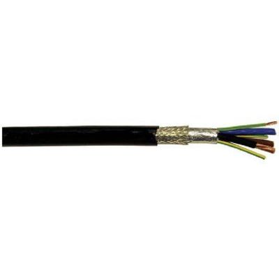 Motor connecting cable with overall copper braided screening used for the connection of a frequency converter with a frequency converter motor. Employed in connection with machine tools, handling gear, machining and processing equipment, industrial robots, assembly lines, etc. when exposed to harsh mechanical strain. Fixed installation and occasional free movement, in dry, moist, and wet rooms.
